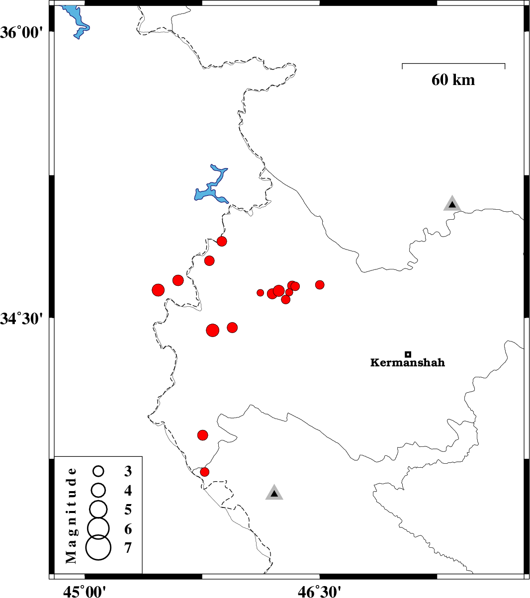 2018/10/13 | 19:20:55.5 | 22:50:55.5 | 34.433 | 45.817 | 15 | ML:3.6 | Kermanshah Province, 7 km of Sar-e pol-e zahab | ||