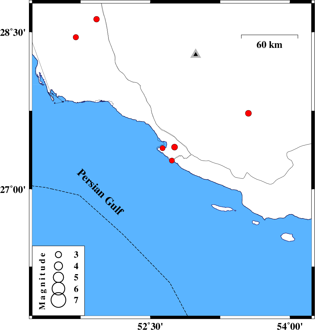 2018/10/01 | 08:40:53.9 | 12:10:53.9 | 27.402 | 52.76 | 14 | ML:2.9 | Bushehr Province, 20 km South-West of Mehr |
