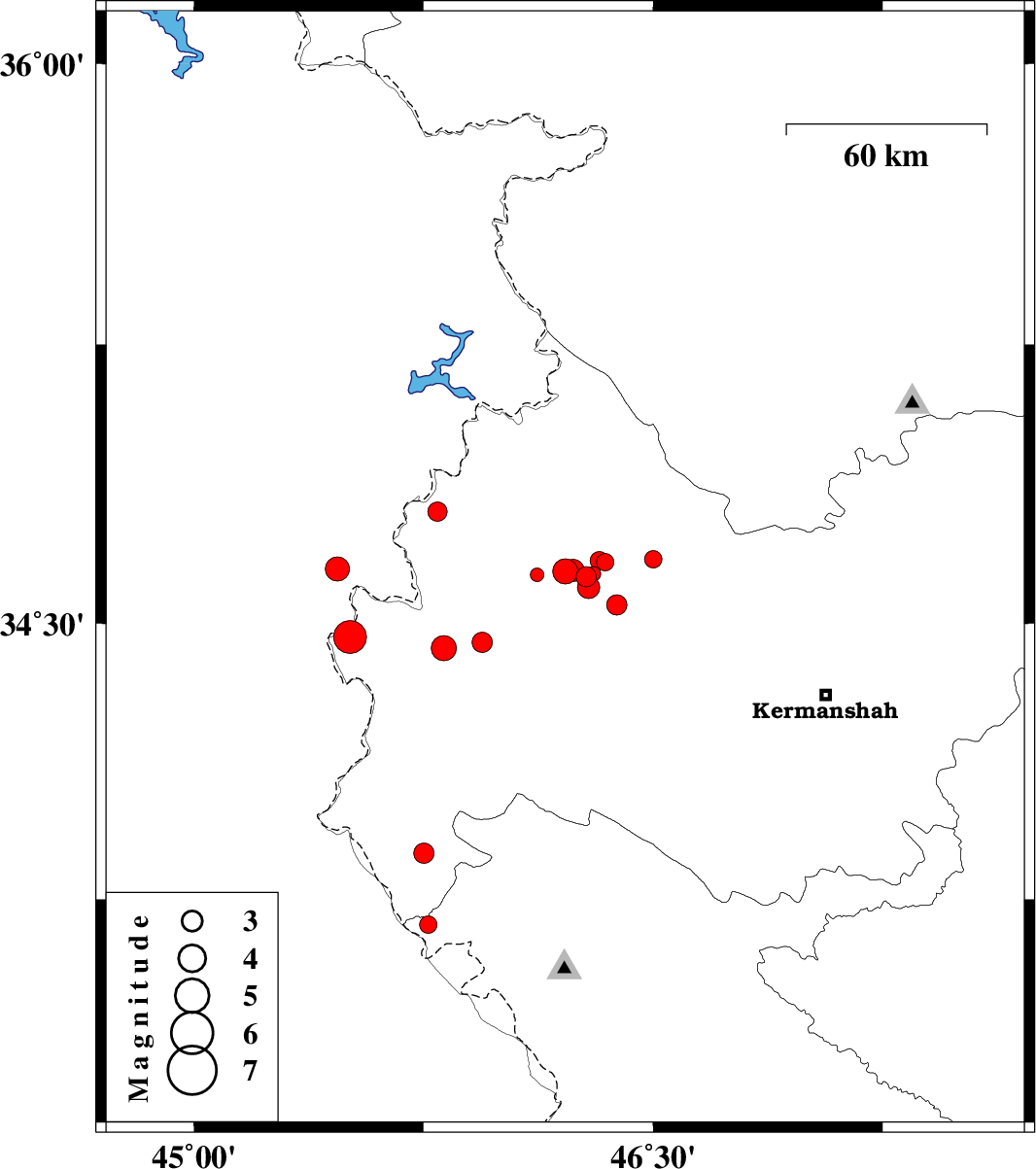2018/10/18 | 13:08:08.7 | 16:38:08.7 | 34.596 | 46.29 | 7 | ML:3.3 | Kermanshah Province, 30 km South-West of Javanrud | ||