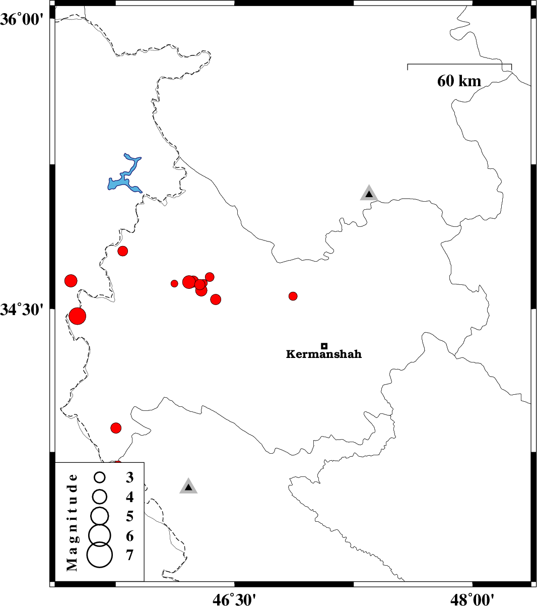 2018/10/18 | 13:08:08.7 | 16:38:08.7 | 34.596 | 46.29 | 7 | ML:3.3 | Kermanshah Province, 30 km South-West of Javanrud | ||