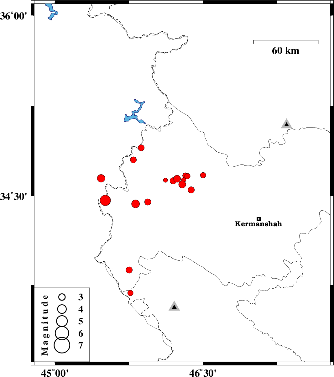 2018/10/13 | 19:20:55.5 | 22:50:55.5 | 34.433 | 45.817 | 15 | ML:3.6 | Kermanshah Province, 7 km of Sar-e pol-e zahab | ||