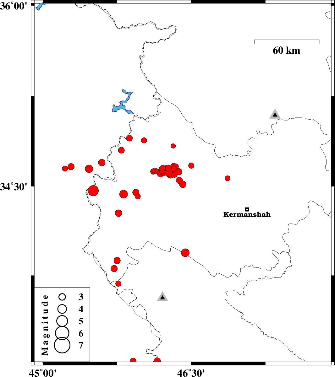 2018/11/01 | 16:35:55.3 | 20:05:55.3 | 33.942 | 46.441 | 15 | ML:3.6 | Kermanshah Province, 18 km North-East of Eyvan | ||