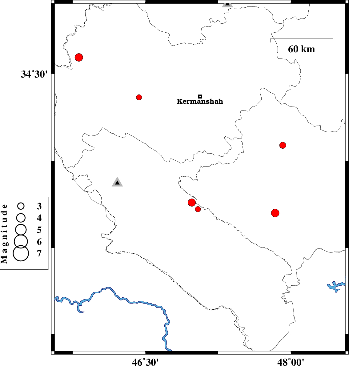 2018/11/01 | 16:35:55.3 | 20:05:55.3 | 33.942 | 46.441 | 15 | ML:3.6 | Kermanshah Province, 18 km North-East of Eyvan | ||