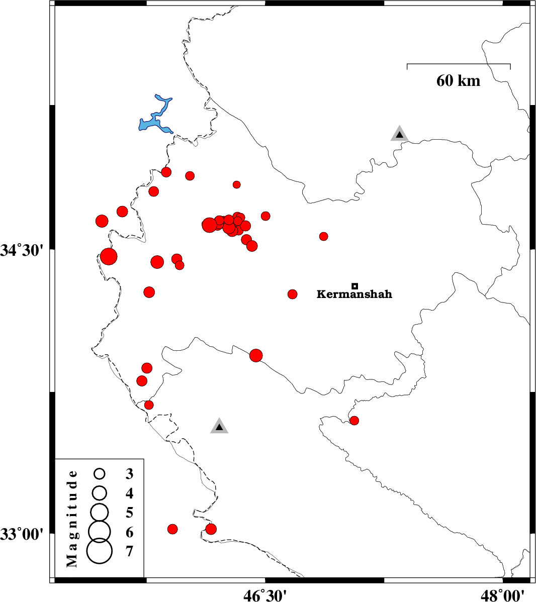 2018/10/18 | 13:08:08.7 | 16:38:08.7 | 34.596 | 46.29 | 7 | ML:3.3 | Kermanshah Province, 30 km South-West of Javanrud | ||