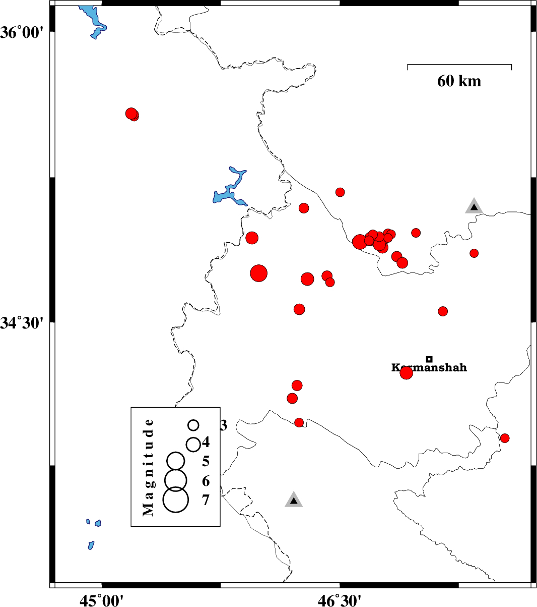 2018/11/01 | 16:35:55.3 | 20:05:55.3 | 33.942 | 46.441 | 15 | ML:3.6 | Kermanshah Province, 18 km North-East of Eyvan | ||