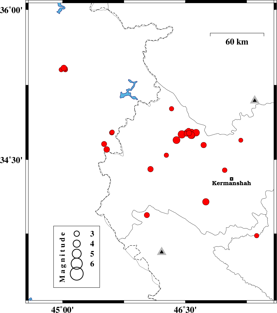 2018/11/15 | 19:45:03.8 | 23:15:03.8 | 34.642 | 46.322 | 15 | ML:3.8 | Kermanshah Province, 24 km South-West of Javanrud | ||
