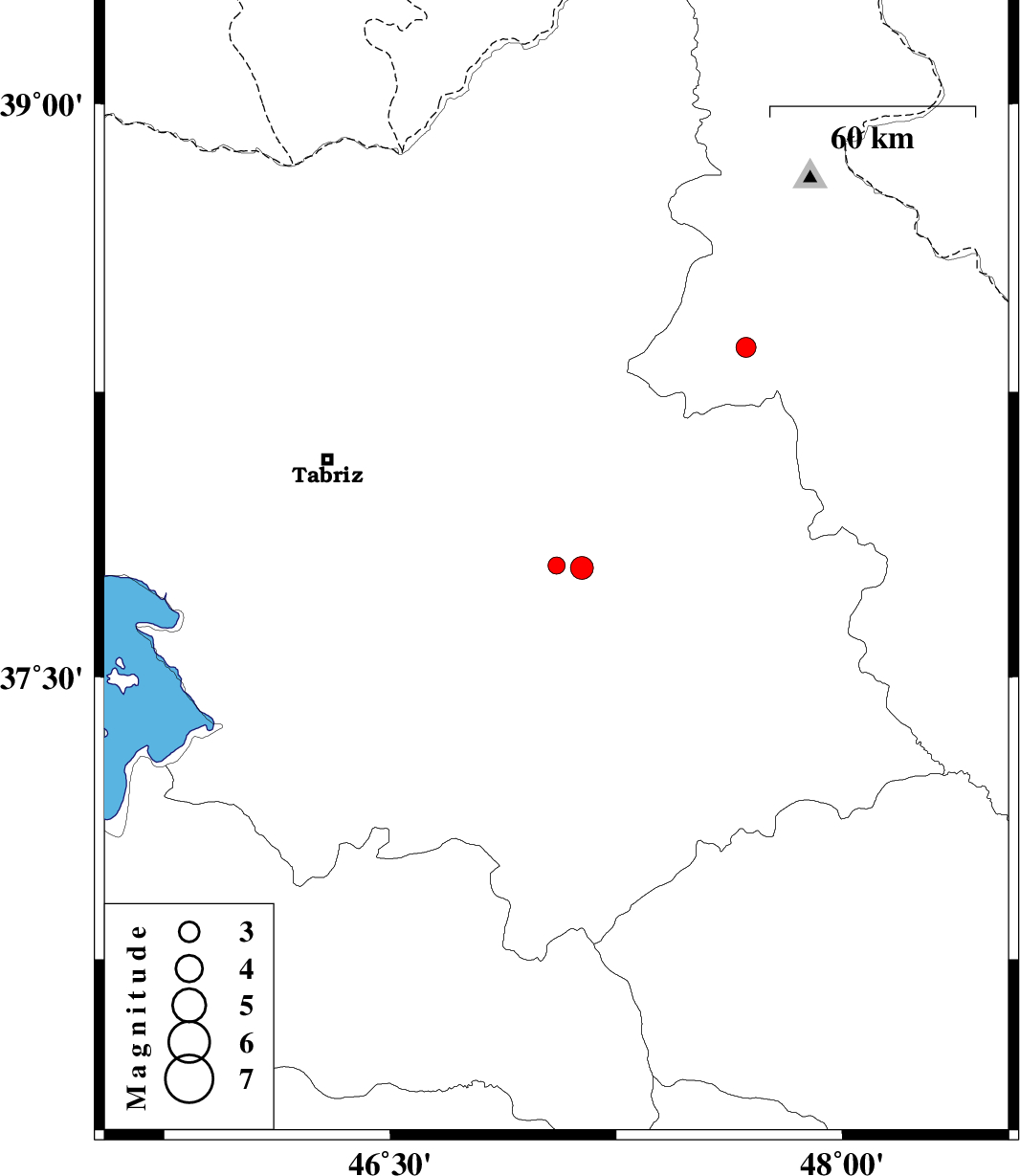 2018/11/27 | 11:33:40.3 | 15:03:40.3 | 37.794 | 47.052 | 14 | ML:2.5 | Azarbaijan Sharghi Province, 19 km -East of Bostanabad | ||