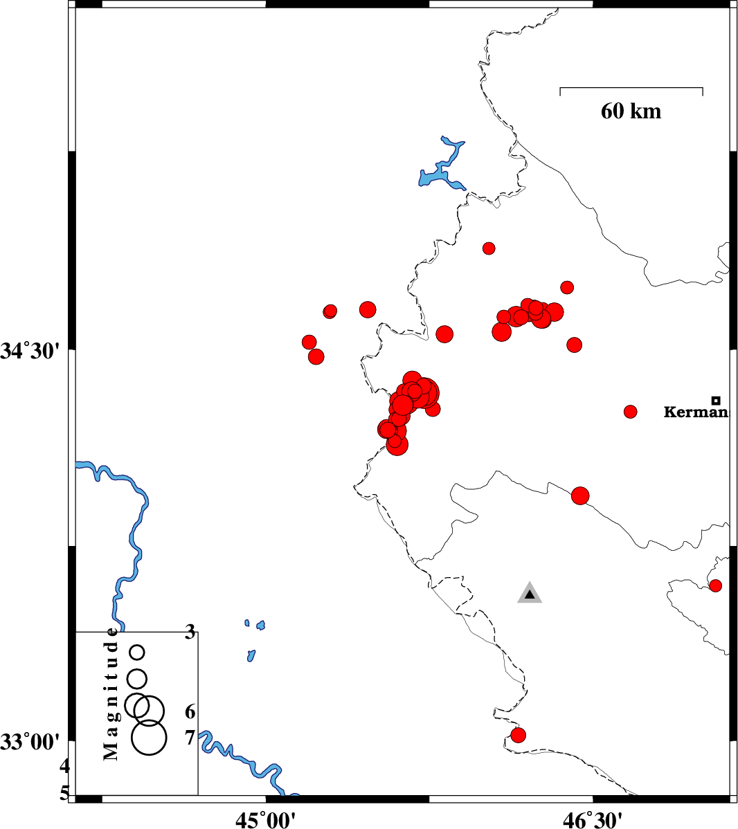 2018/11/15 | 19:45:03.8 | 23:15:03.8 | 34.642 | 46.322 | 15 | ML:3.8 | Kermanshah Province, 24 km South-West of Javanrud | ||