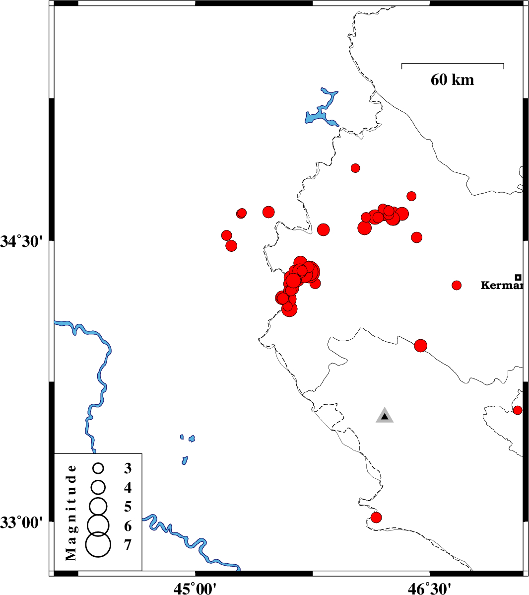 2018/11/27 | 06:36:34.3 | 10:06:34.3 | 34.34 | 45.668 | 16 | ML:4.1 | Kermanshah Province, 21 km South of Qasr-E-Shirin | ||