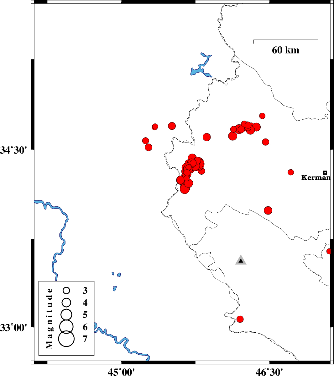 2018/11/23 | 13:03:30.0 | 16:33:30.0 | 34.651 | 45.467 | 15 | ML:3.4 | Iraq, 18 km North-West of Qasr-E-Shirin | ||