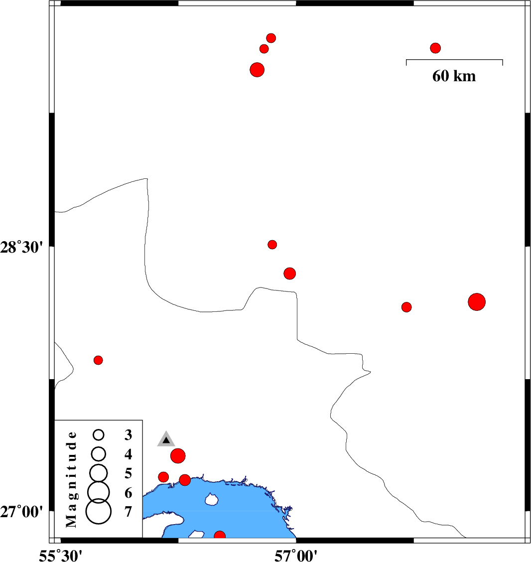 2018/12/04 | 02:19:27.3 | 05:49:27.3 | 27.194 | 56.155 | 11 | ML:2.9 | Hormozgan Province, 13 km -West of Bandar-e abbas | ||