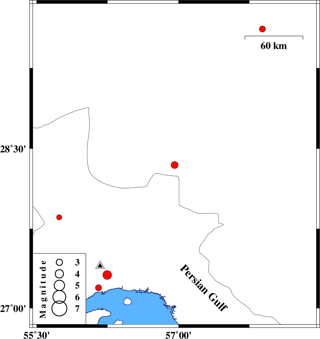 2018/12/04 | 02:19:27.3 | 05:49:27.3 | 27.194 | 56.155 | 11 | ML:2.9 | Hormozgan Province, 13 km -West of Bandar-e abbas | ||