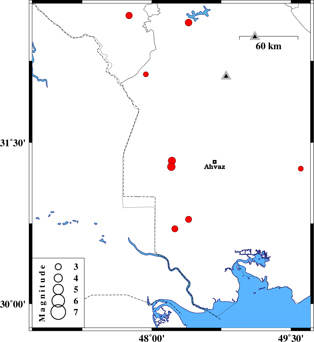 2018/11/12 | 10:37:59.5 | 14:07:59.5 | 30.701 | 48.249 | 15 | ML:3.1 | Khoozestan Province, 31 km North of Khorramshahr | ||
