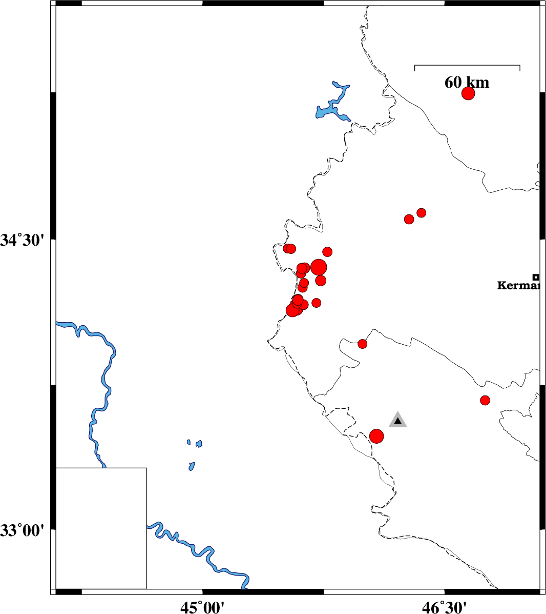 2018/12/03 | 02:50:21.2 | 06:20:21.2 | 34.325 | 45.61 | 17 | ML:2.7 | Kermanshah Province, 21 km South of Qasr-E-Shirin | ||