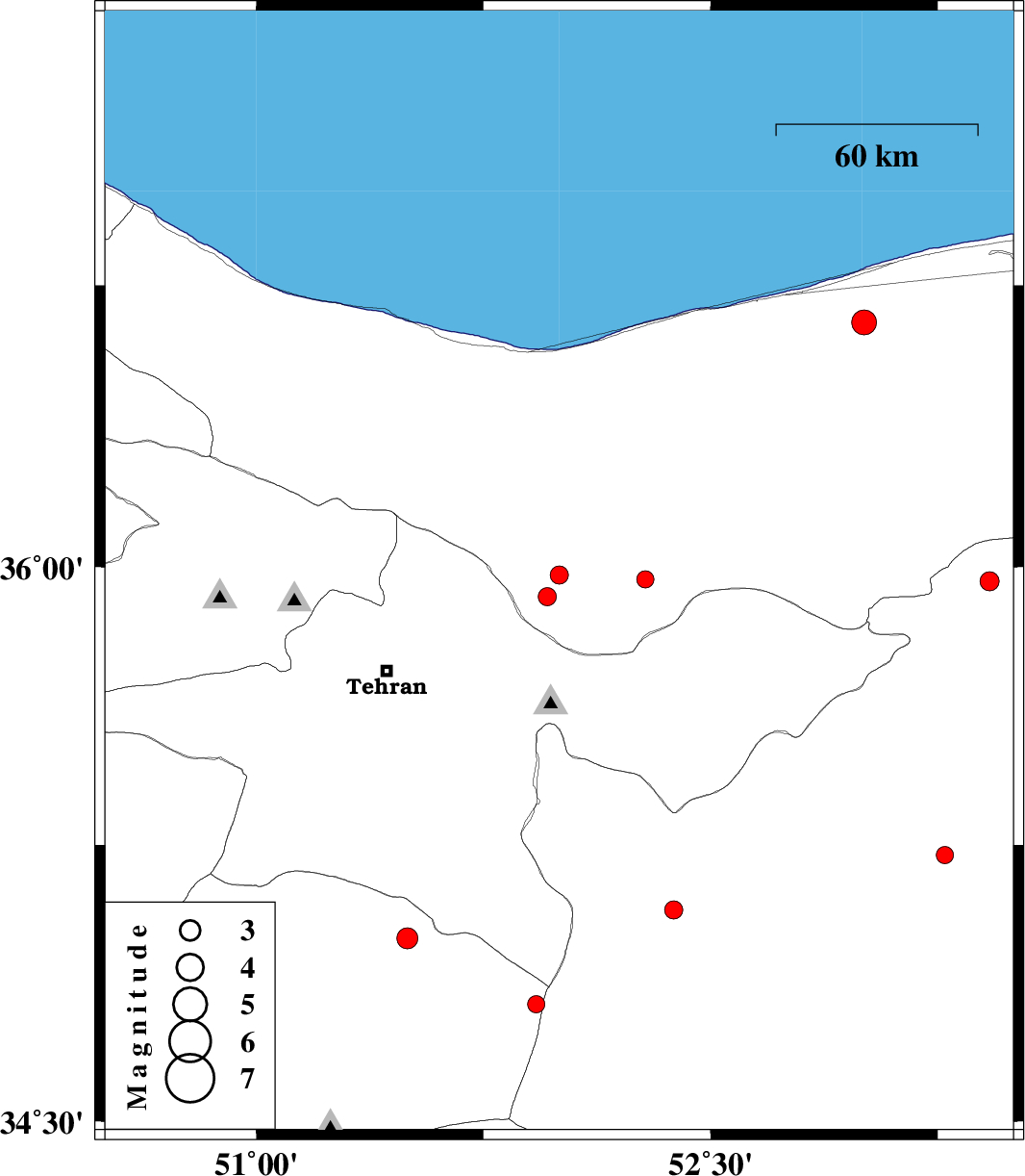| 2018/12/10 | 10:05:57.7 | 13:35:57.7 | 35.92 | 51.96 | 17 | ML:2.7 | Mazandaran Province, 25 km North-West of Damavand | ||