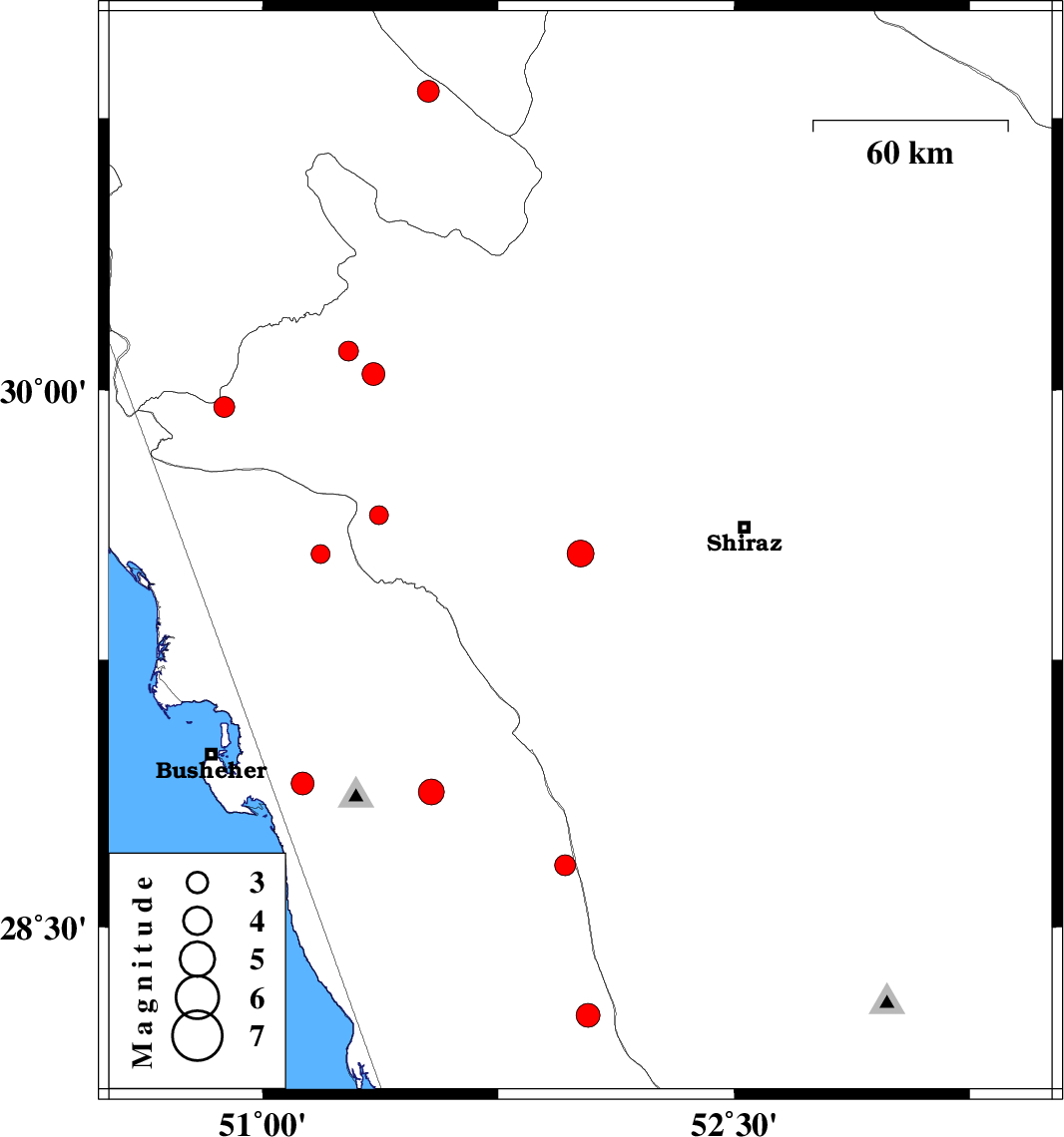 2018/11/28 | 05:34:19.9 | 09:04:19.9 | 28.252 | 52.035 | 9 | ML:3.4 | Bushehr Province, 47 km North of Bandar-e kangan | ||