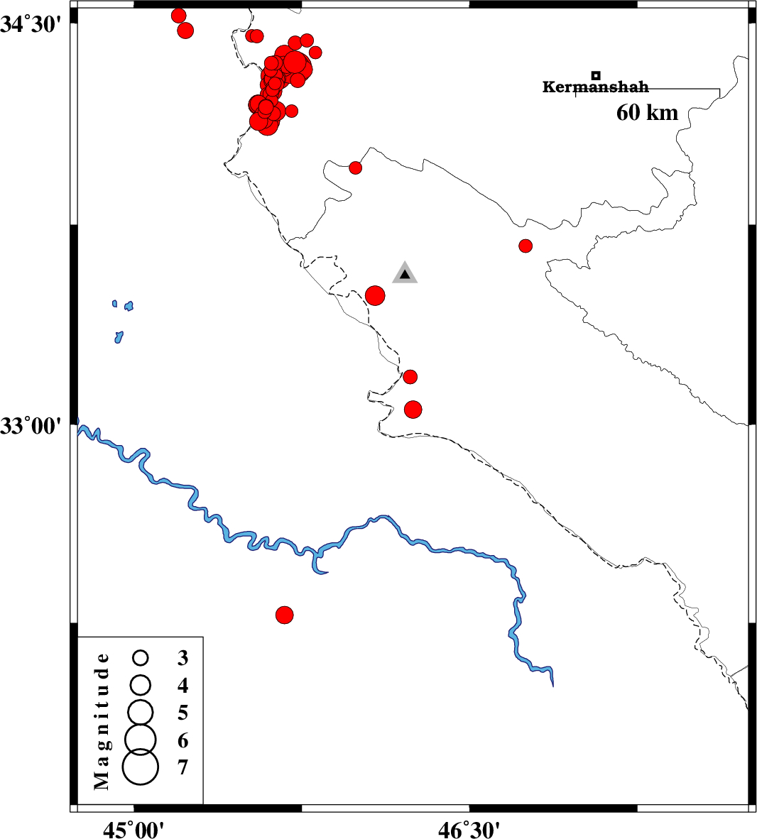 2018/11/27 | 06:36:34.3 | 10:06:34.3 | 34.34 | 45.668 | 16 | ML:4.1 | Kermanshah Province, 21 km South of Qasr-E-Shirin | ||