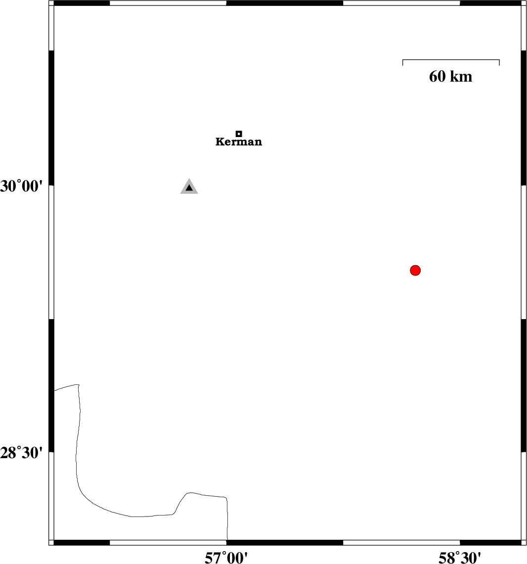 2018/12/11 | 01:41:01.5 | 05:11:01.5 | 30.416 | 57.431 | 14 | ML:4.2 | Kerman Province, 37 km North-East of Kerman | ||