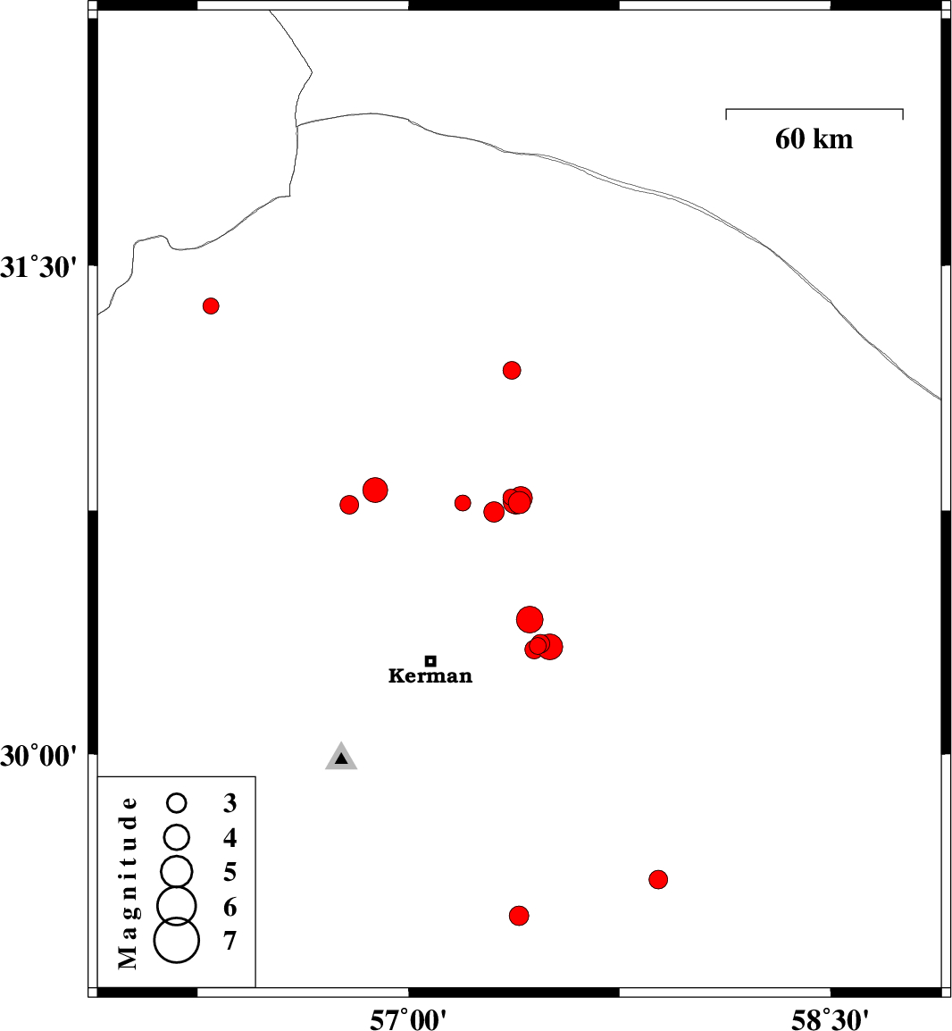 2018/12/11 | 01:41:01.5 | 05:11:01.5 | 30.416 | 57.431 | 14 | ML:4.2 | Kerman Province, 37 km North-East of Kerman | ||