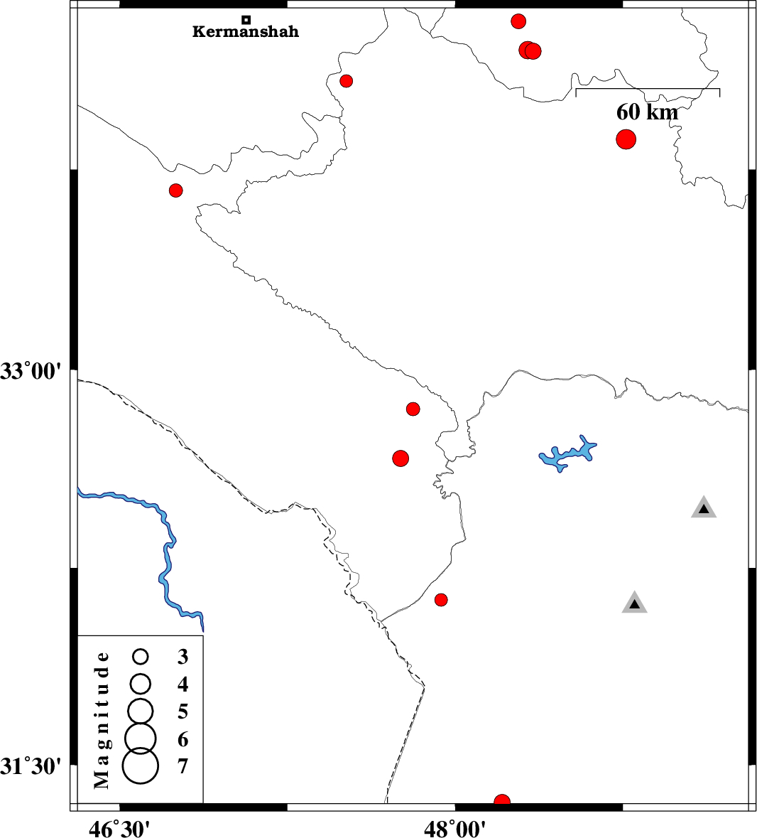 2018/12/13 | 11:13:19.0 | 14:43:19.0 | 34.079 | 47.513 | 6 | ML:2.5 | Lorestan Province, 22 km South of Harsin | ||