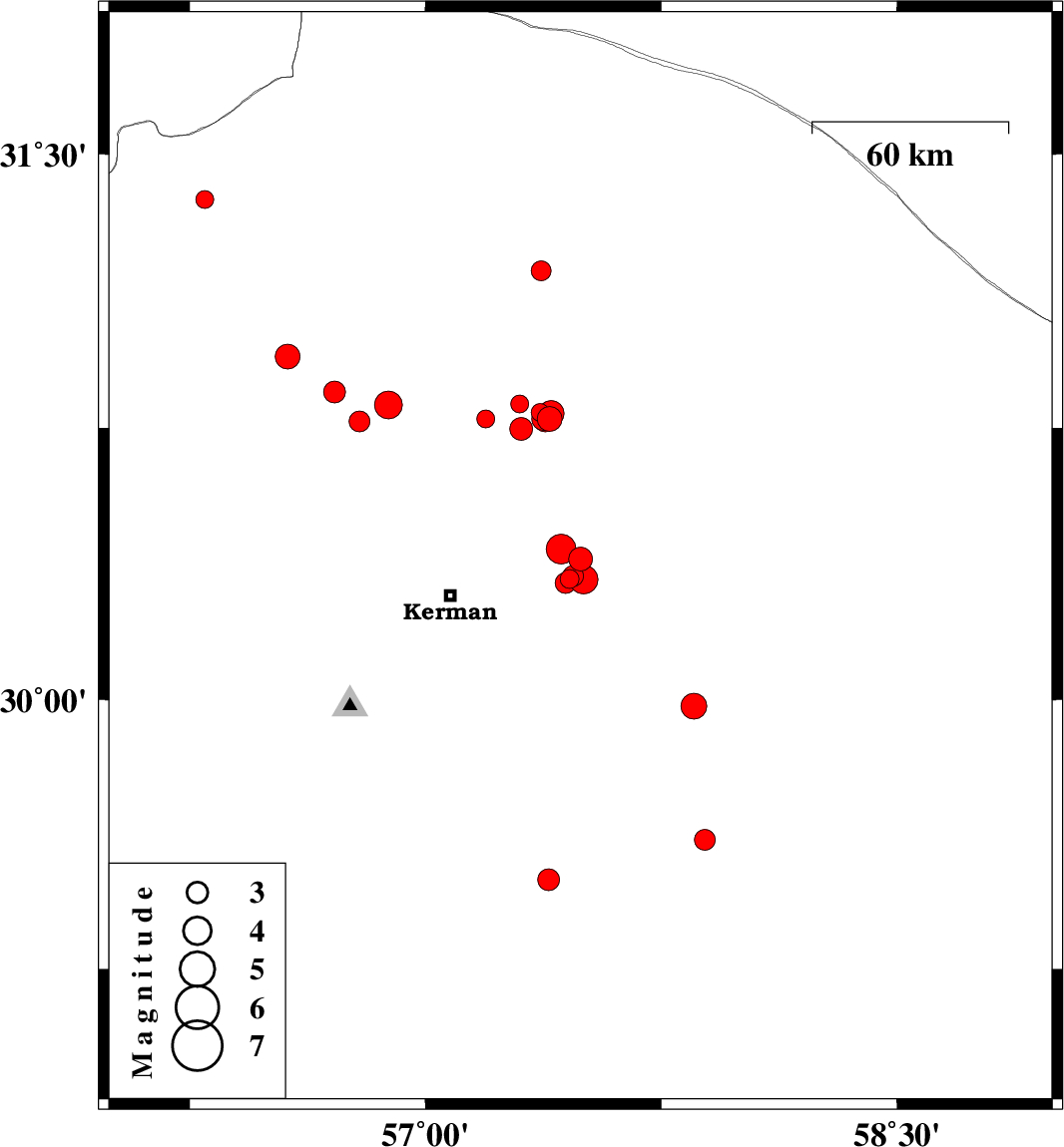 2018/12/19 03:32:31.6 07:02:31.6 29.98157.85414 ML:3.7 Kerman Province, 82 km South-East of Kerman
