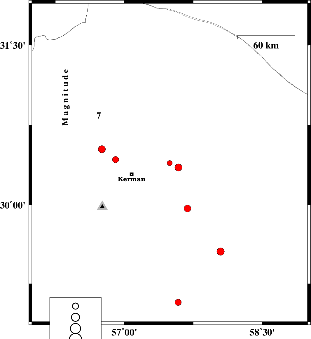 2018/12/19 | 03:32:31.6 | 07:02:31.6 | 29.981 | 57.854 | 14 | ML:3.7 | Kerman Province, 82 km South-East of Kerman | ||