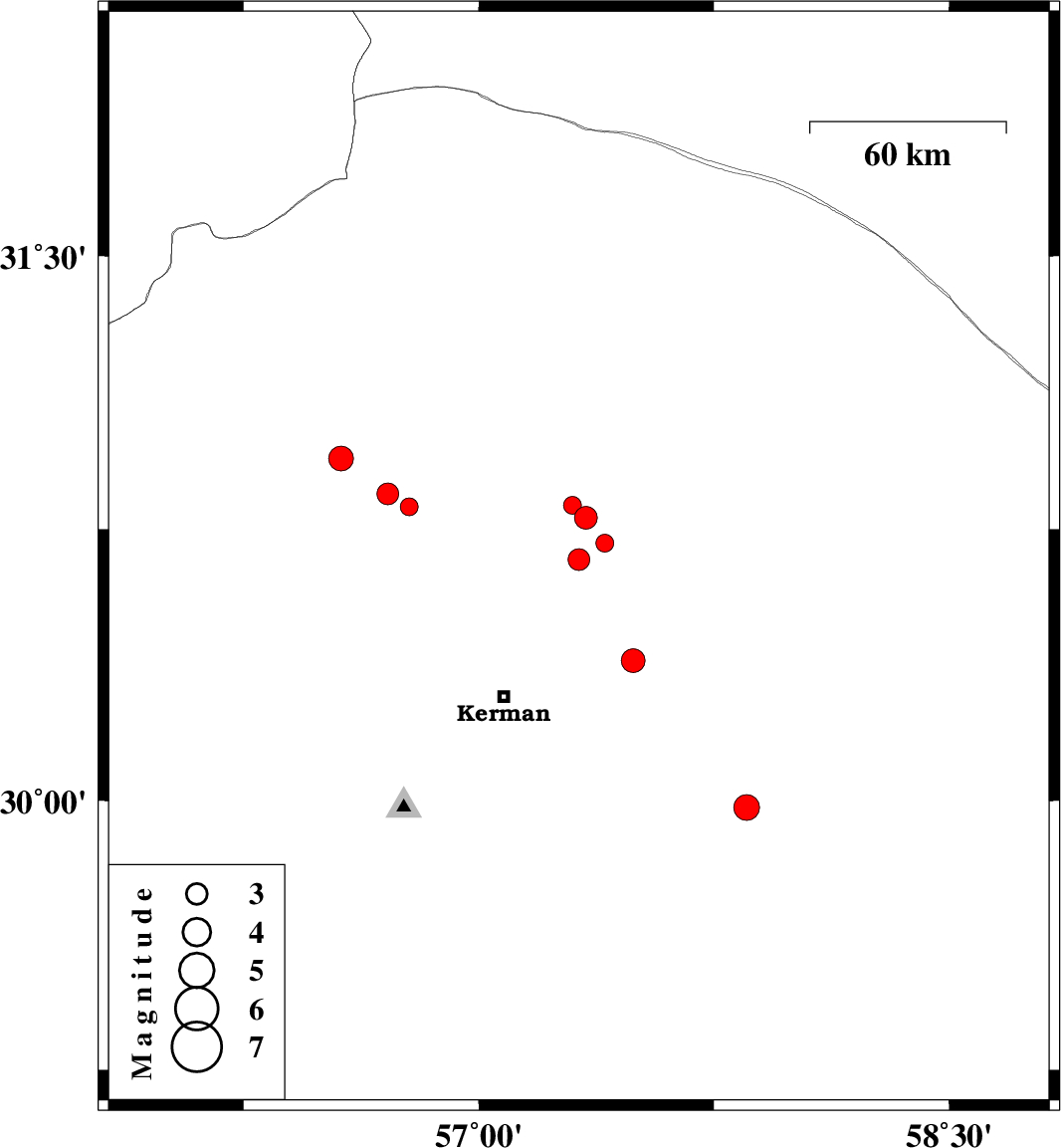 2018/12/19 | 03:32:31.6 | 07:02:31.6 | 29.981 | 57.854 | 14 | ML:3.7 | Kerman Province, 82 km South-East of Kerman |