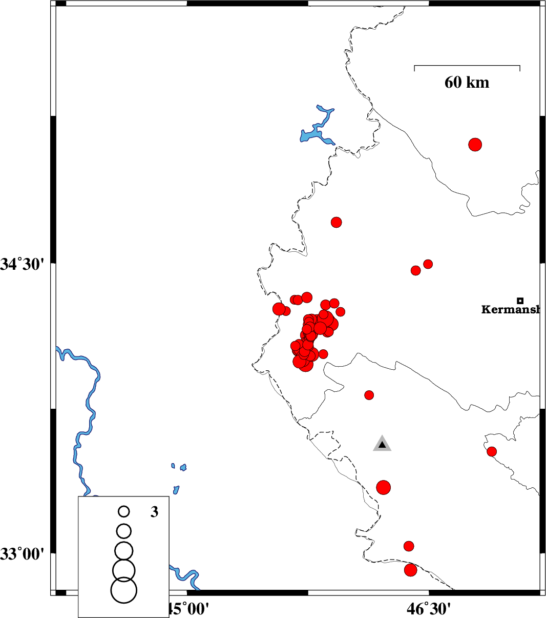 2018/12/01 | 02:13:43.1 | 05:43:43.1 | 34.328 | 45.757 | 17 | ML:3.6 | Kermanshah Province, 19 km South-West of Sar-e pol-e zahab | ||