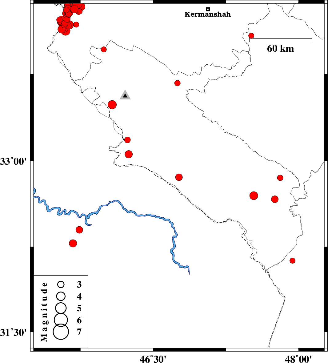2018/11/27 | 13:03:06.0 | 16:33:06.0 | 34.271 | 45.598 | 14 | ML:3.1 | Kermanshah Province, 27 km South of Qasr-E-Shirin | ||