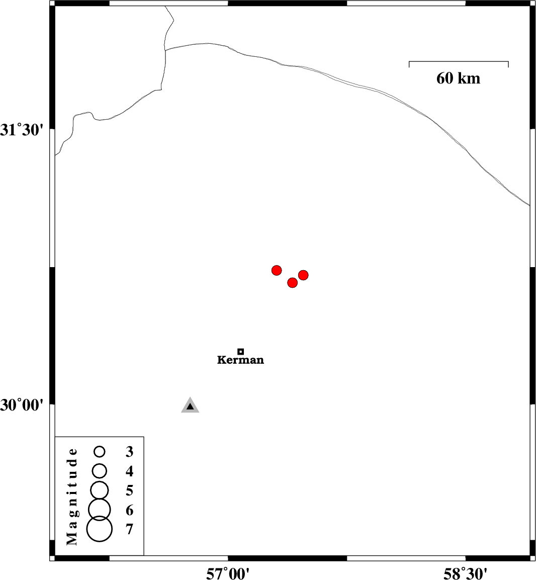 2019/01/02 | 04:20:40.4 | 07:50:40.4 | 30.664 | 57.406 | 14 | ML:2.8 | Kerman Province, 52 km North-East of Kerman | ||
