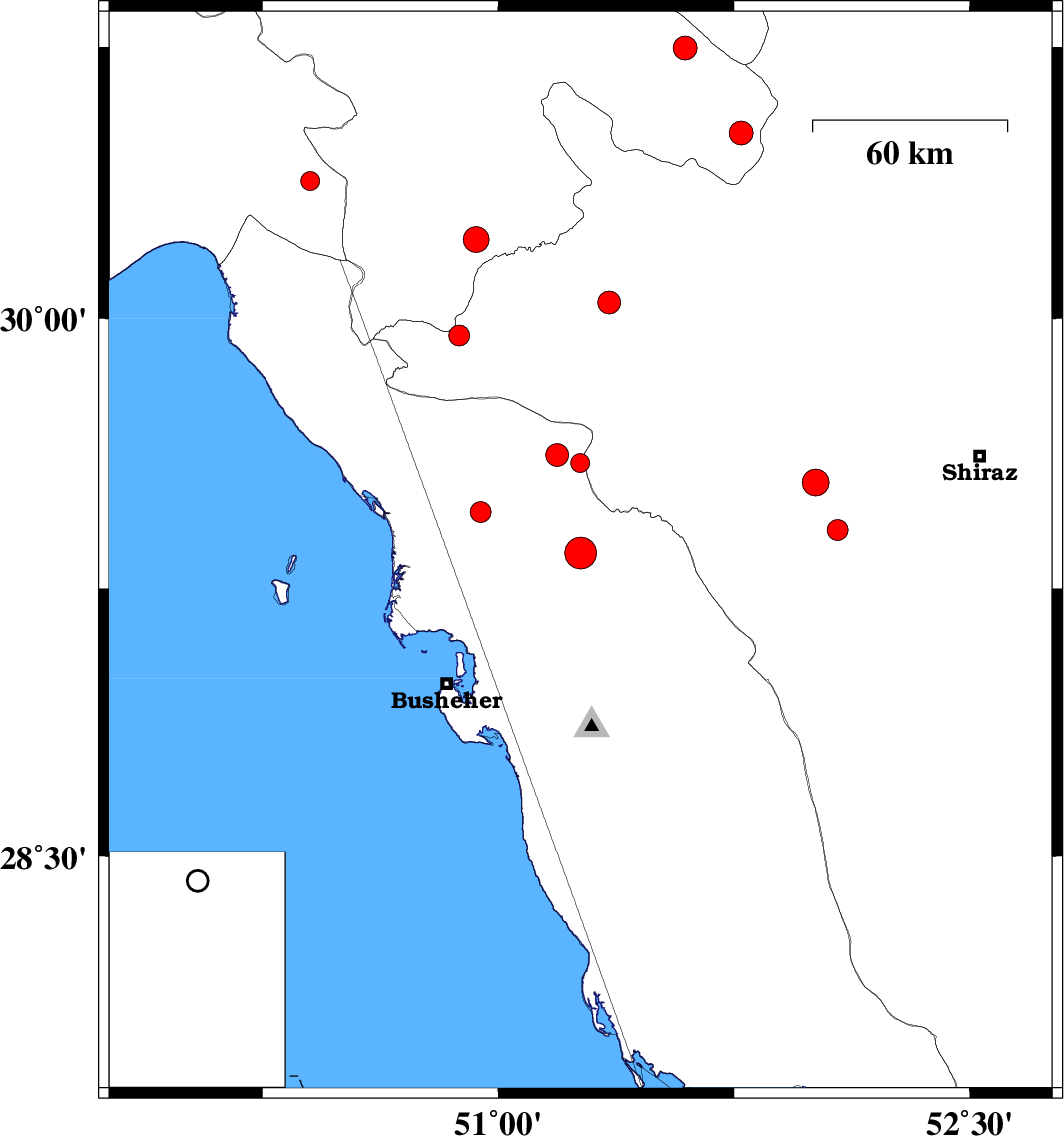 2018/12/29 | 15:20:58.0 | 18:50:58.0 | 29.464 | 50.944 | 14 | ML:3 | Bushehr Province, 34 km North-West of Borazjan | ||