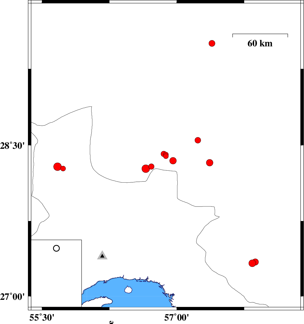 2019/01/01 | 01:20:45.5 | 04:50:45.5 | 27.342 | 57.875 | 14 | ML:3.2 | Kerman Province, 38 km -East of Manujan | ||