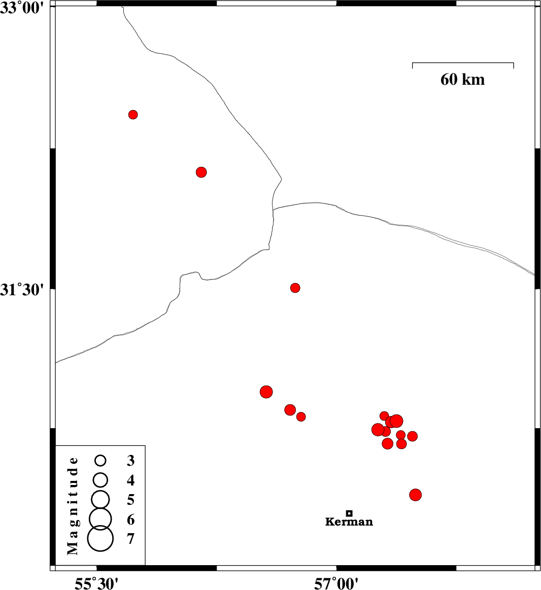 2019/01/02 | 04:20:40.4 | 07:50:40.4 | 30.664 | 57.406 | 14 | ML:2.8 | Kerman Province, 52 km North-East of Kerman | ||