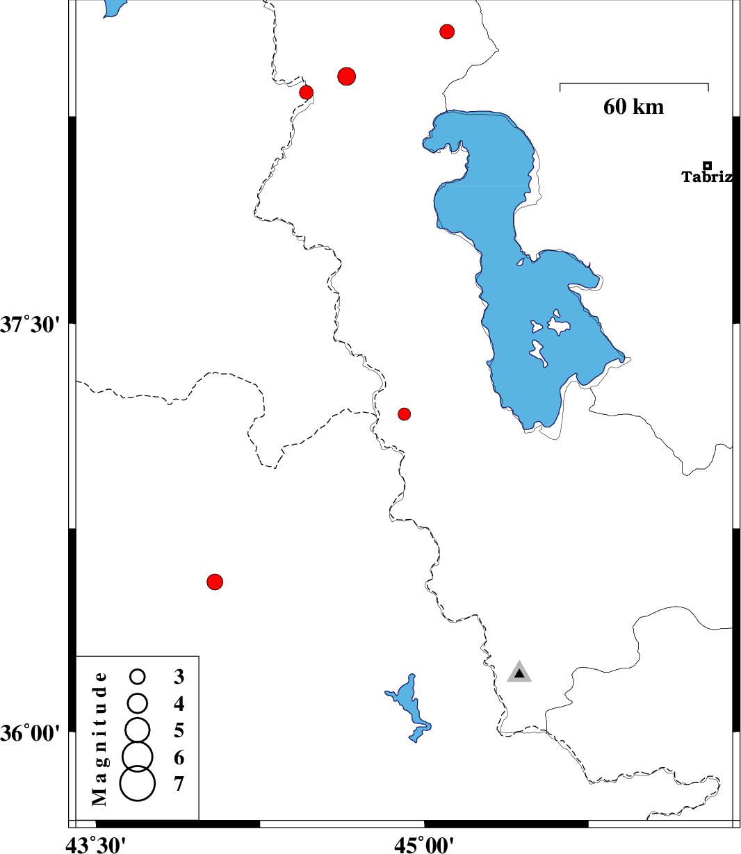 2018/12/22 | 05:21:32.5 | 08:51:32.5 | 38.394 | 44.644 | 14 | ML:3.6 | Azarbaijan Gharbi Province, 25 km North-West of Salmas | ||