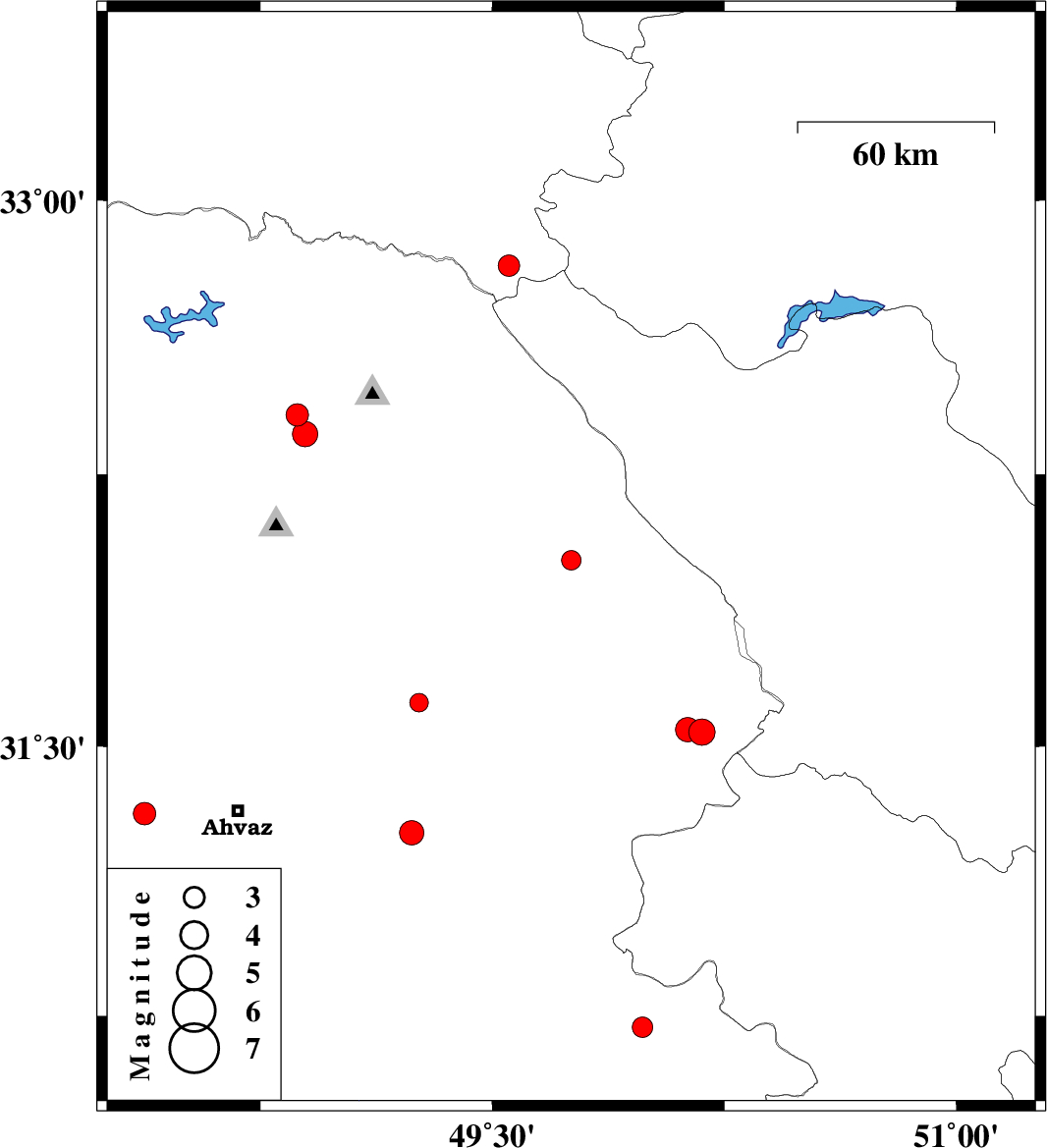 2019/01/08 | 18:05:36.7 | 21:35:36.7 | 30.719 | 49.985 | 15 | ML:2.9 | Khoozestan Province, 27 km -East of Omidiyeh | ||