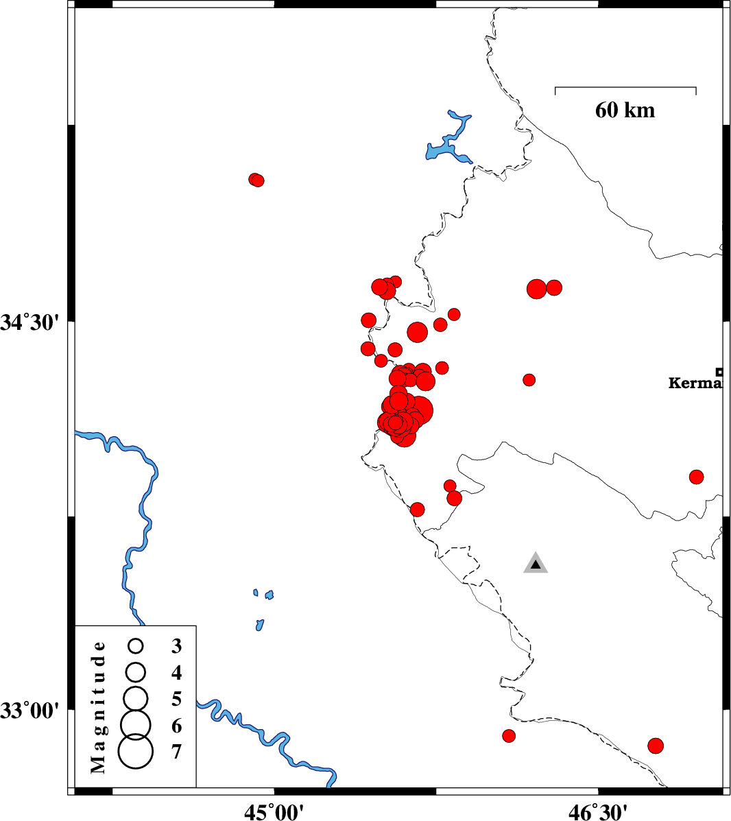 2019/01/16 | 00:50:00.9 | 04:20:00.9 | 34.632 | 45.488 | 14 | ML:3.4 | Iraq, 16 km North of Qasr-E-Shirin | ||