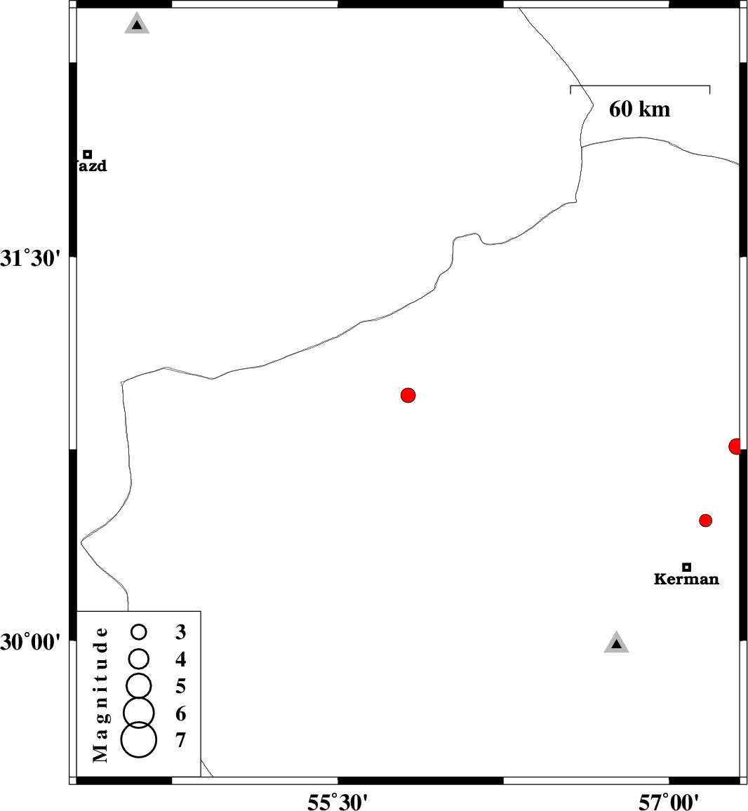 2019/01/21 | 18:49:01.6 | 22:19:01.6 | 30.761 | 57.305 | 14 | ML:3.2 | Kerman Province, 57 km North-East of Kerman | ||
