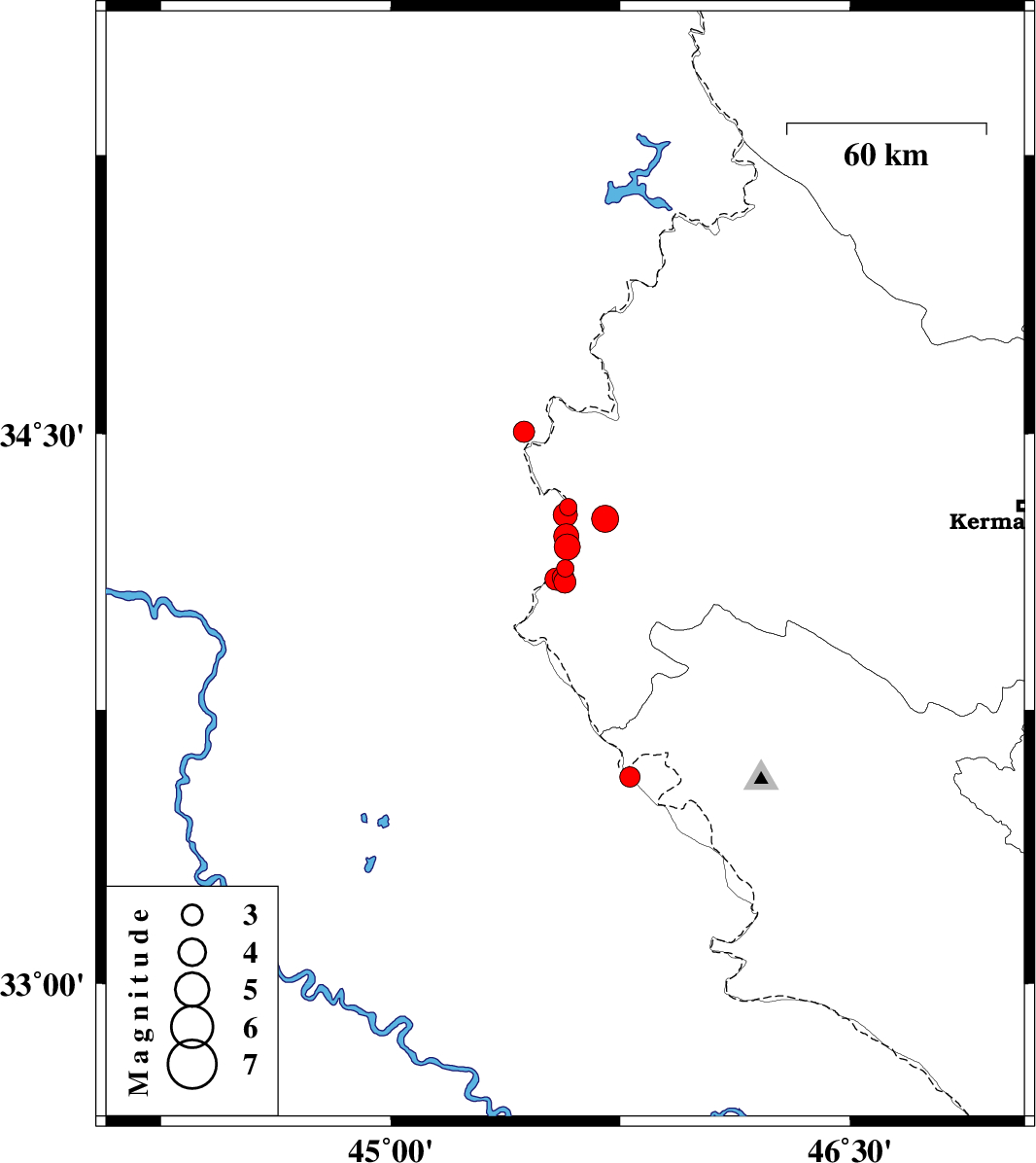 2019/01/23 | 05:04:04.1 | 08:34:04.1 | 34.281 | 45.57 | 14 | ML:3.5 | Iraq, 26 km South of Qasr-E-Shirin | ||