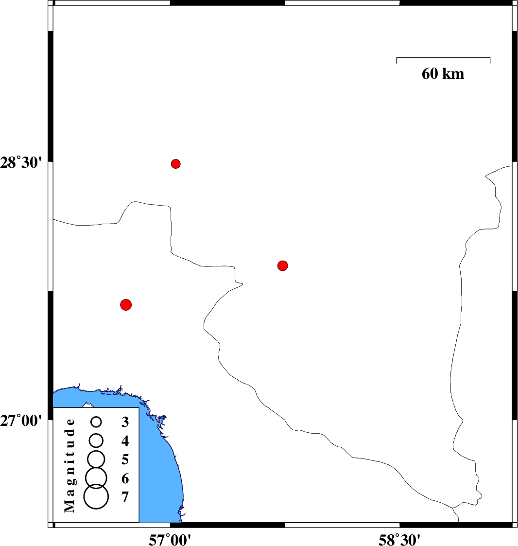 2019/01/29 | 00:24:00.5 | 03:54:00.5 | 27.671 | 56.711 | 14 | ML:3.3 | Hormozgan Province, 59 km North-West of Dehbarez | ||