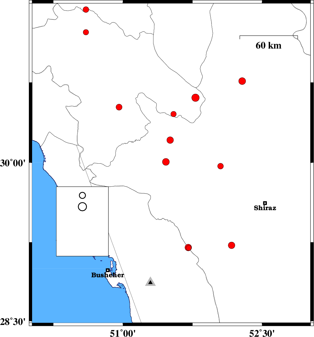 2019/01/10 | 00:34:24.7 | 04:04:24.7 | 29.38 | 51.204 | 17 | ML:3.4 | Bushehr Province, 13 km North of Borazjan | ||
