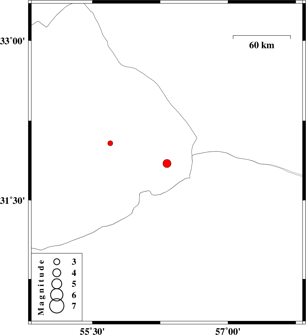 2019/02/11 | 01:20:43.9 | 04:50:43.9 | 31.847 | 56.325 | 14 | ML:4.1 | Yazd Province, 79 km North-West of Ravar | ||