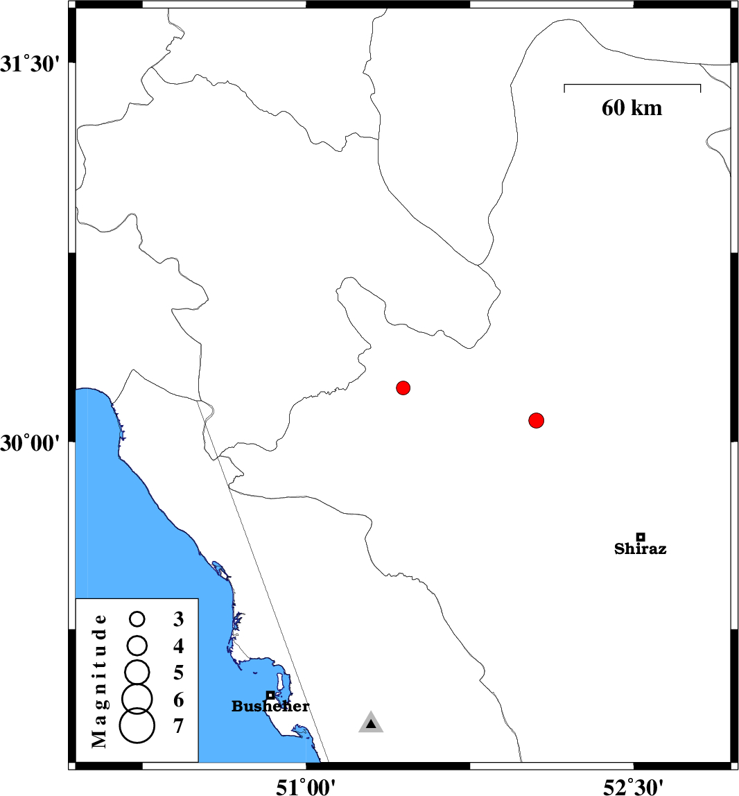 2019/02/24 | 17:04:30.3 | 20:34:30.3 | 30.214 | 51.444 | 9 | ML:2.8 | Fars Province, 14 km North of Nurabad | ||