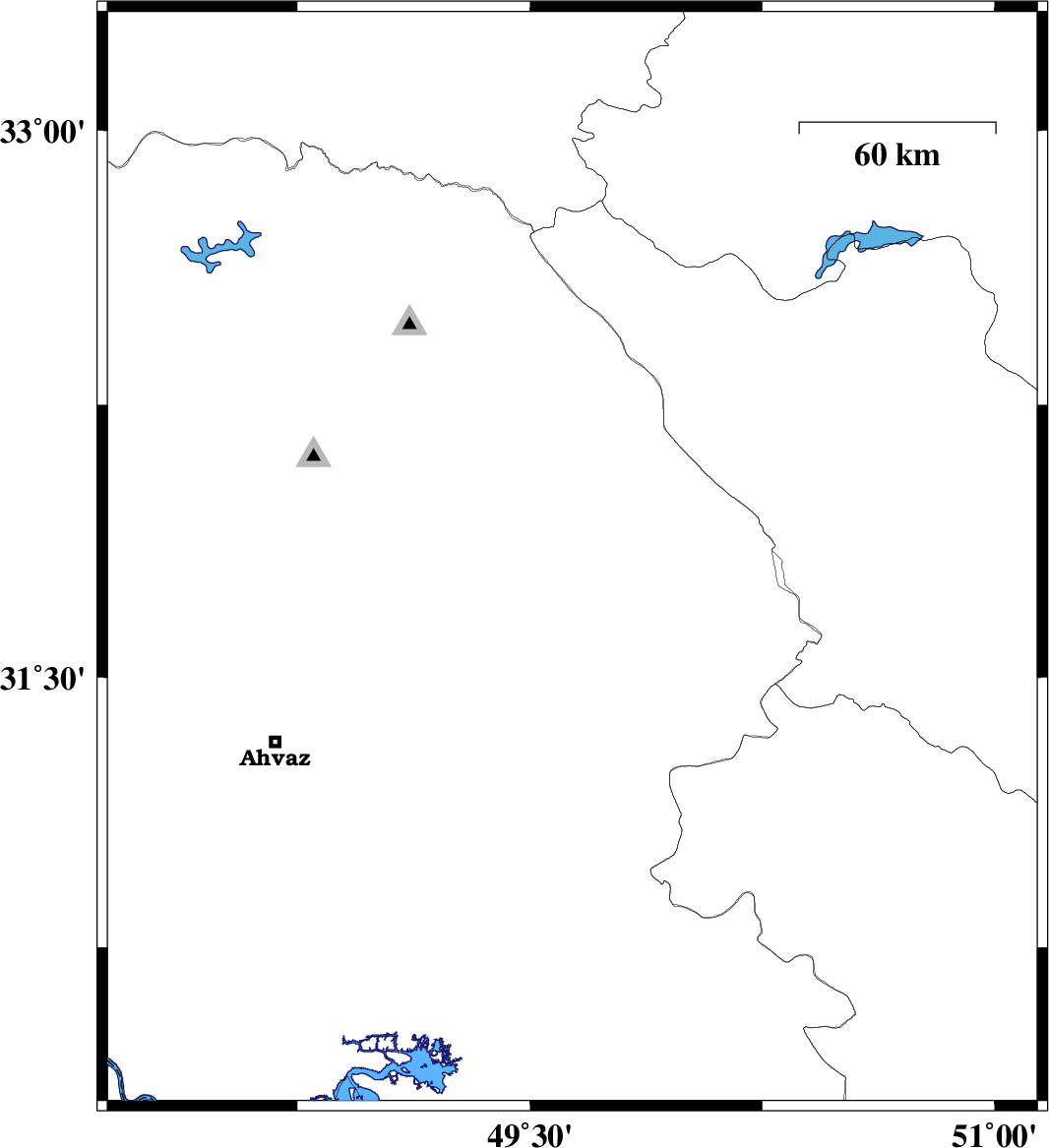 2019/02/23 | 01:00:11.5 | 04:30:11.5 | 31.829 | 48.657 | 15 | ML:3 | Khoozestan Province, 30 km South-West of Shushtar | ||