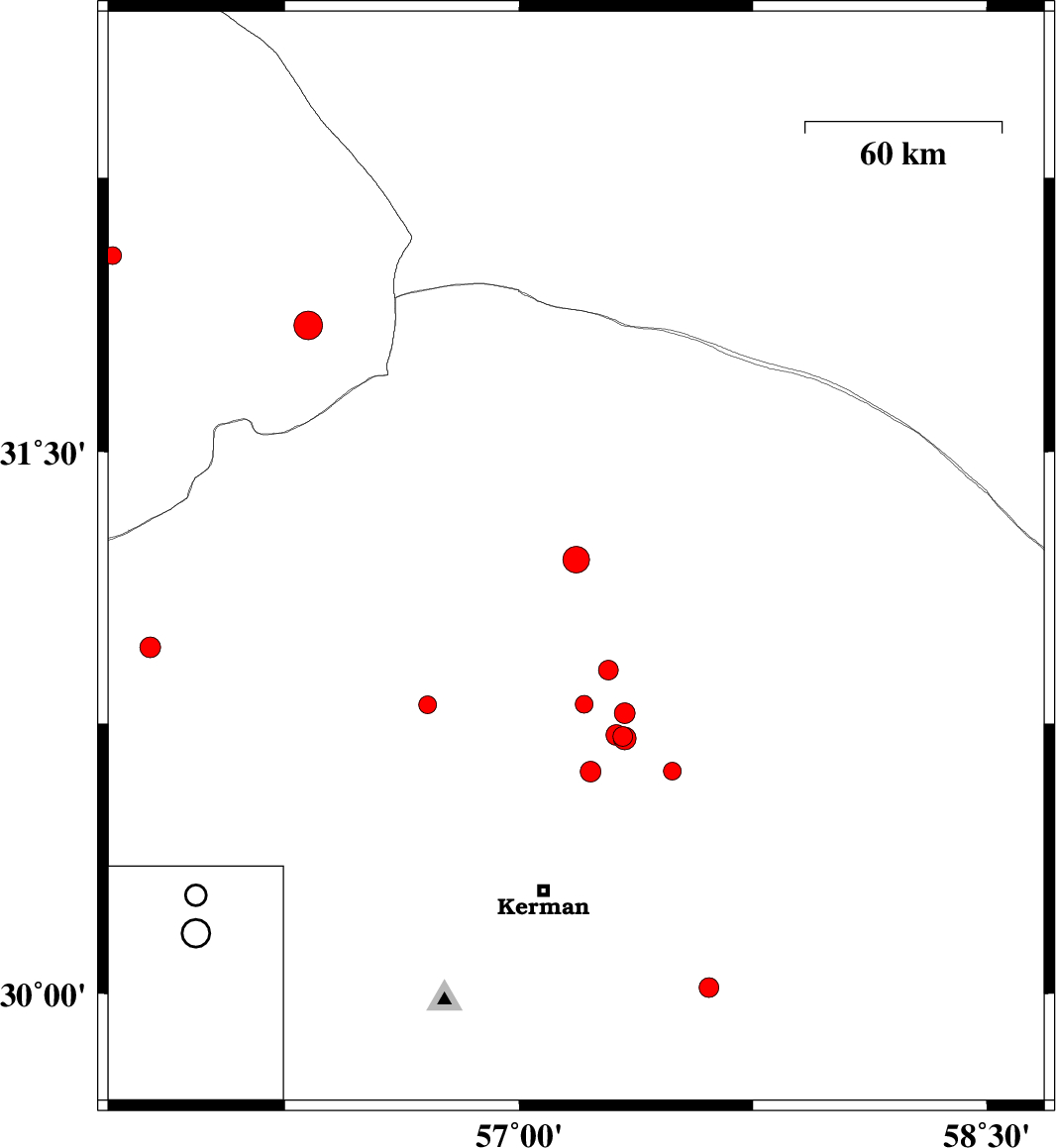 2019/01/26 | 10:14:13.8 | 13:44:13.8 | 30.961 | 55.818 | 14 | ML:3 | Kerman Province, 64 km North-West of Rafsanjan |