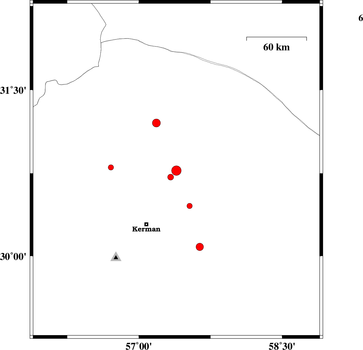 2019/03/02 | 10:04:47.4 | 13:34:47.4 | 30.774 | 57.393 | 14 | ML:4.5 | Kerman Province, 62 km North-East of Kerman | ||