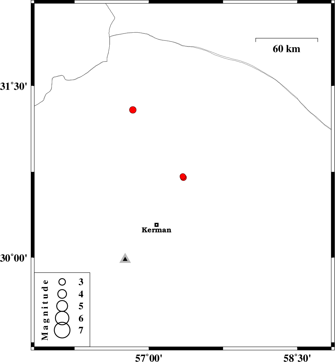 2019/03/06 | 23:07:05.6 | 02:37:05.6 | 30.701 | 57.349 | 14 | ML:2.8 | Kerman Province, 53 km North-East of Kerman | ||
