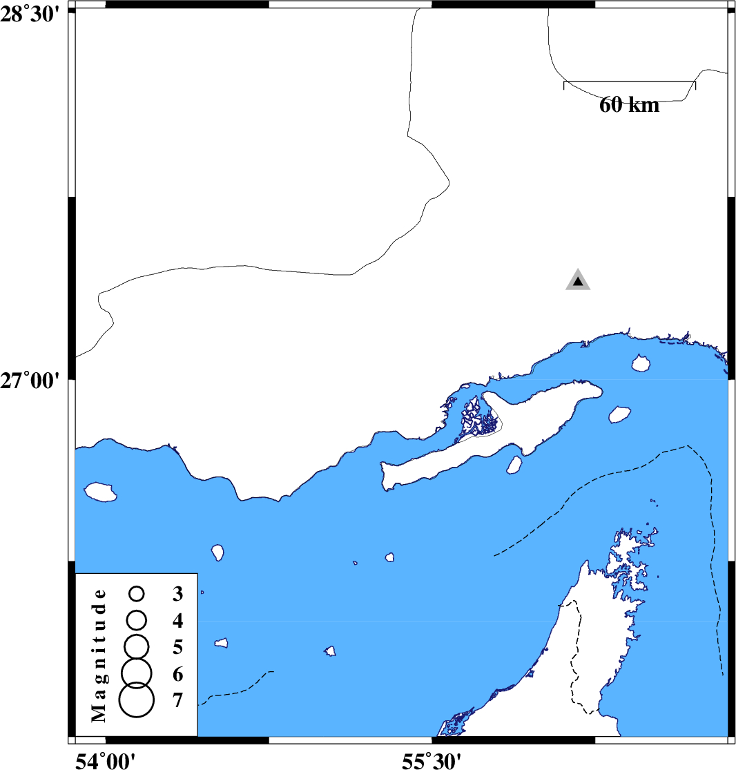 2019/04/16 | 05:42:15.0 | 10:12:15.0 | 27.02 | 55.36 | 32 | Mb:4 | Hormozgan Province, 90 km -West of Qeshm |
