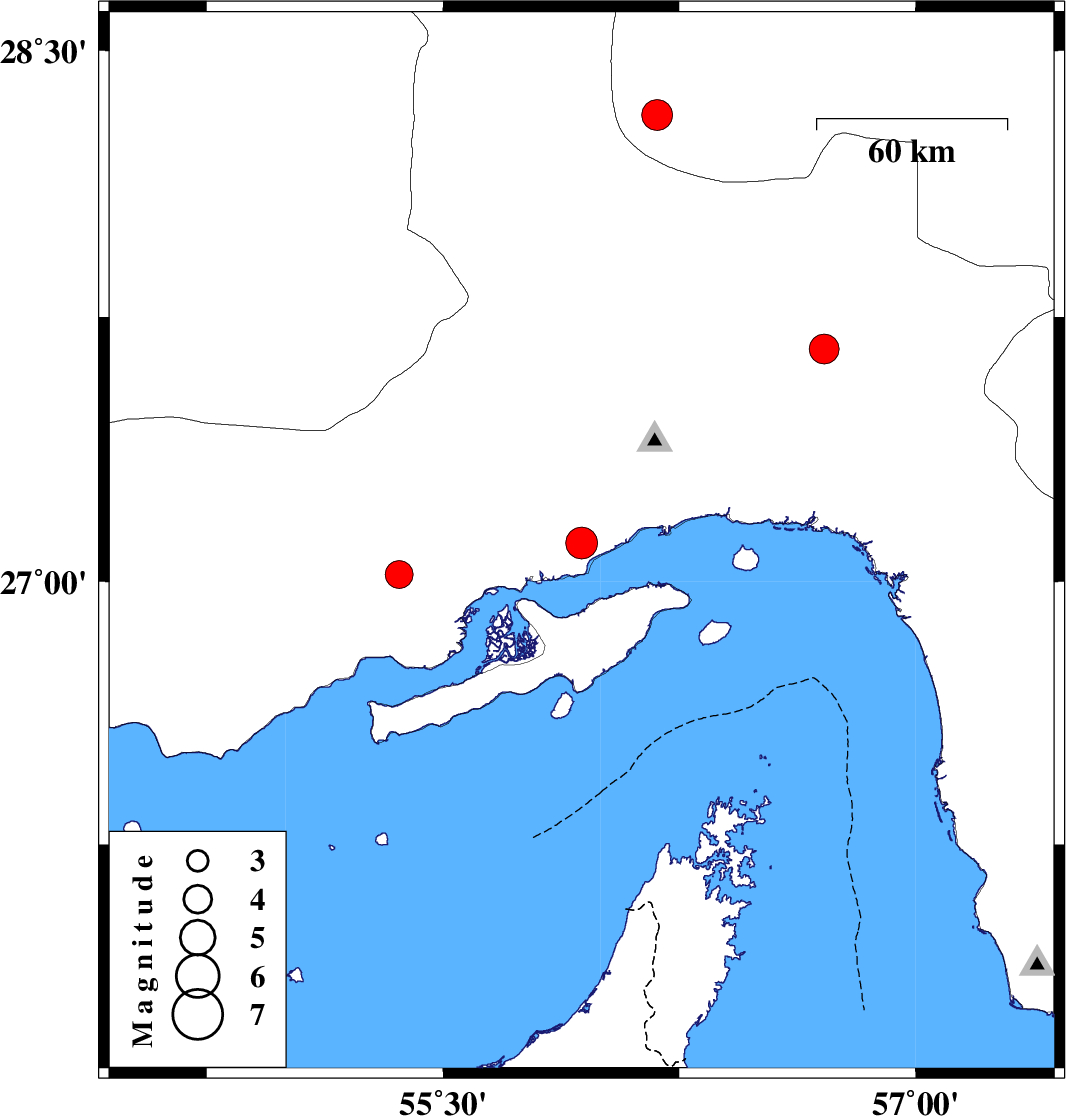 2019/04/16 | 05:42:15.0 | 10:12:15.0 | 27.02 | 55.36 | 32 | Mb:4 | Hormozgan Province, 90 km -West of Qeshm | ||