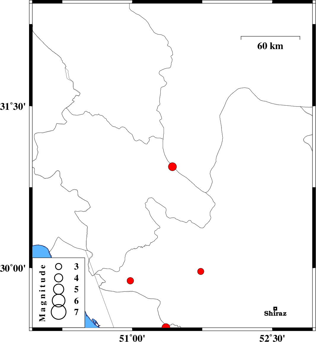 2019/04/21 | 13:33:05.8 | 18:03:05.8 | 29.44 | 51.36 | 10 | ML:3.9 | Bushehr Province, 25 km North-East of Borazjan | ||