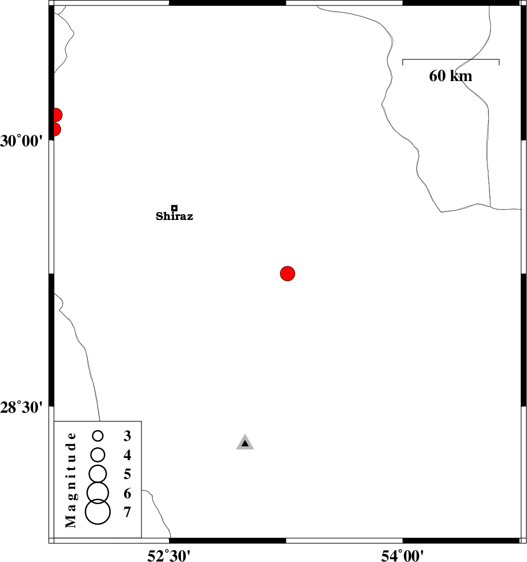 2019/05/12 | 09:13:17.2 | 13:43:17.2 | 30.14 | 51.77 | 6 | ML:3.9 | Fars Province, 24 km -East of Nurabad | ||